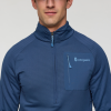 A fleece fit for movement, the Otero Half-Zip Pullover features a fitted silhouette, a recycled polyester blend, a raised grid back for more warmth and breathability, and concealed zippers. This technical fleece is great for cool weather hikes or other adventures.