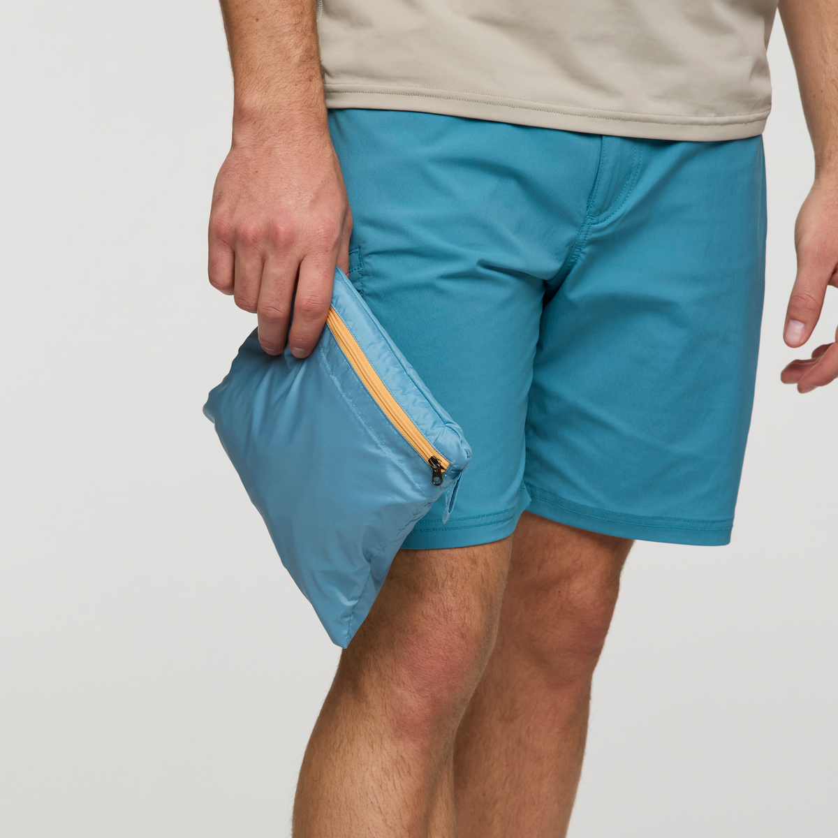 - Packs into front zippered pocket